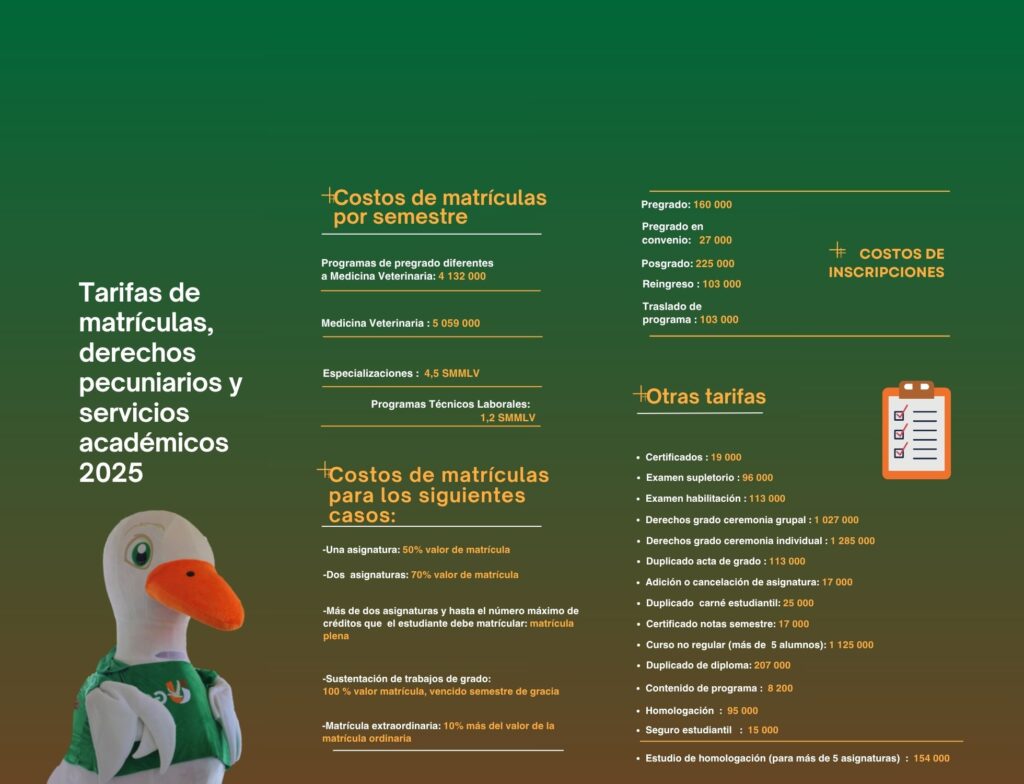 Por medio del cual se fijan valores de matrículas, derechos pecuniarios y tarifas de servicios académicos para el año 2025